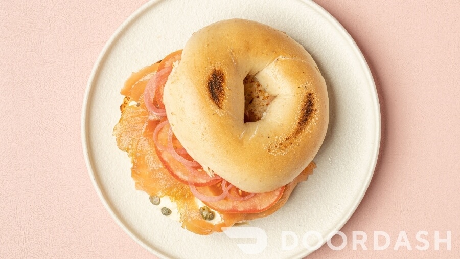 Smoked salmon, cream cheese, baby capers, tomato, pickles red onion
