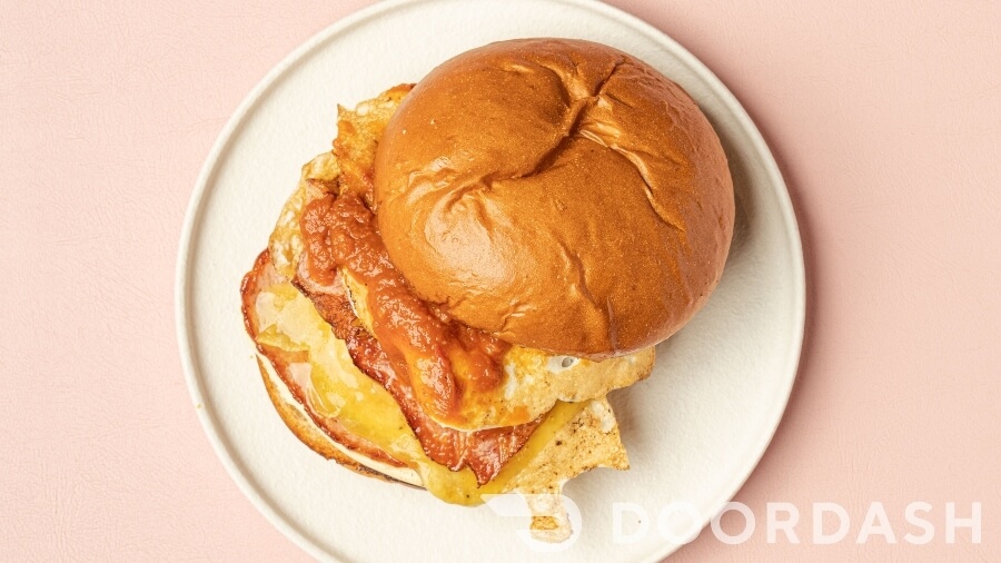 2 fried eggs, bacon, cheese, aioli, chili jam on house milk bun